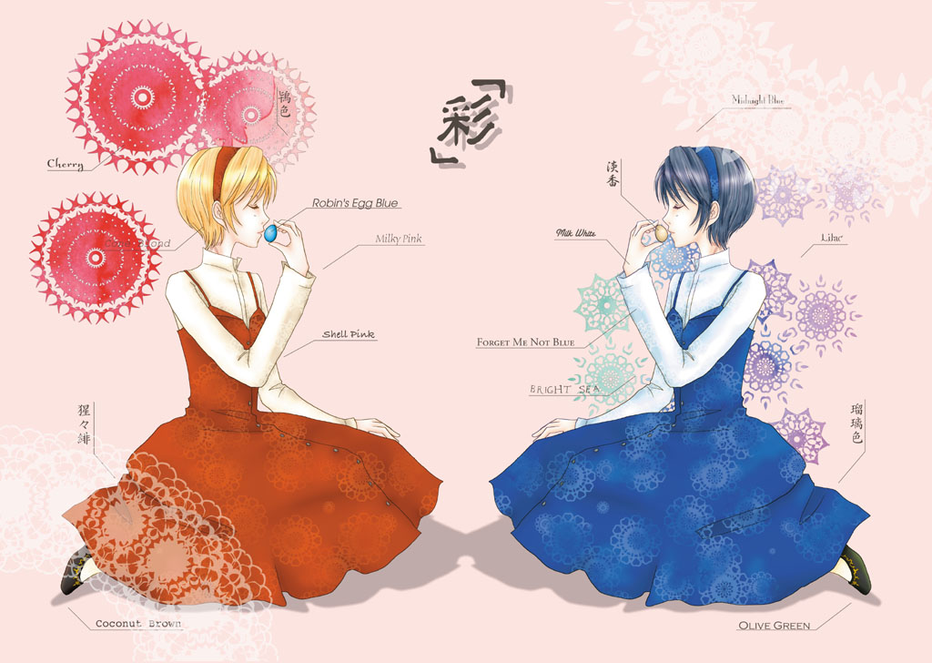 色はステキでも、漢字がやたら難しかったり、マイナーすぎて想像しにくい色(ヨーロッパコマドリの卵の色、だなんて、例え説明があってもわかんないよ!)だったりとで使えなかった色も多数。
